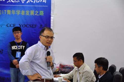 在互动环节中,现场师生争先就自己感到困惑的问题,如青年教师进行科研的目标定位,计算机学科的发展前景、数据挖掘相关问题等与三位教授进行了热烈地讨论与交流。