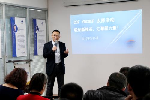 首先,CCF YOCSEF太原AC委员山西百得科技开发股份有限公司常务副总魏建英为大家做了《“创造机会,成就未来”--CCF YOCSEF文化介绍》的主题报告。报告分别介绍了CCF YOCSEF的含义、分论坛、组织机构、定位、性质、活动和文化,阐明了YOCSEF的构成和对成员的要求。YOCSEF以“承担社会责任、提升成员能力、促进成员合作、探索新的机制”为主旨,魏建英欢迎有激情、有思想和有社会责任感的学者、企业家及其他各界青年精英加入。