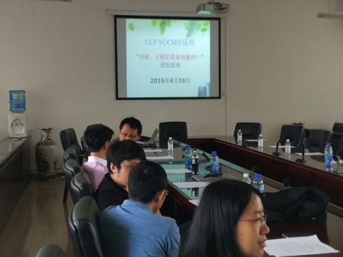 2016年4月16日下午13:30-17:00, CCF YOCSEF昆明在昆明理工大学新迎校区(城市学院)德信楼4楼401会议室组织题为“科研,大师们是如何做的?”专题论坛活动,本次活动有幸邀请到昆明理工大学材料科学与工程学院、国家“千人计划”青年人才 蔡金明博士;昆明理工大学信息工程与自动化学院、昆明理工大学软件质量技术研究所所长 姜瑛 教授;云南民族大学、云南民族大学软件工程研究所所长 潘文林 教授;云南大学信息学院、云南大学优秀学科带头人 陶大鹏教授;云南大学软件学院、云南省“百名海外高层次人才引进计划”引进人才 杨云博士,以及来自云南大学、昆明理工大学、云南财经大学、云南民族大学、云南开放大学以及兄弟院所和企事业单位30余名青年人员参加了此次活动。 此次论坛活动分为“基础科研的一些经验之谈”报告和“科研,大师们是如何做的?”Panel讨论两个环节,蔡金明博士基于自身的科研经历,给大家作了一场题为“基础科研的一些经验之谈”的精彩报告,蔡金明博士分享了自己的高水平学术论文撰写心的体会。他认为想要在某一研究领域取得成就,就要有十年磨一剑的精神,要敢于吃苦、不怕困难,没有哪个科研人员能随随便便取得成功。就如何培养良好的科研习惯而言,他认为要保持高效率的工作,就必须要劳逸结合,必须要休息好,才能满足高强度的劳动;而且,要培养一些兴趣爱好,才能在工作中更有创造力。 在Panel讨论环节,蔡金明、姜瑛、潘文林、陶大鹏和杨云五位特邀嘉宾与参会人员围绕科研是单打独斗还是团队协作,成果怎么认定?作为科研者,如何看待实践开发者?如何能成功地转变科研方向?等问题展开了激烈的讨论和交流,使本次论坛活动推到了高潮。最后一起合影留念。