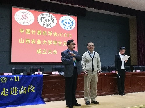 当天还举行了CCF山西农业大学学生分会首次活动——CCF走进山西农业大学。杜子德和陈熙霖以“大学生活如何度过”为主题分别作了报告。精彩的报告激起了在场师生的热情,引发了同学们不断的提问。活动取得了圆满成功。