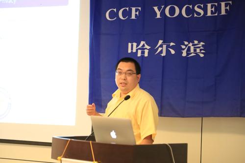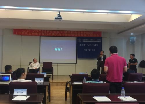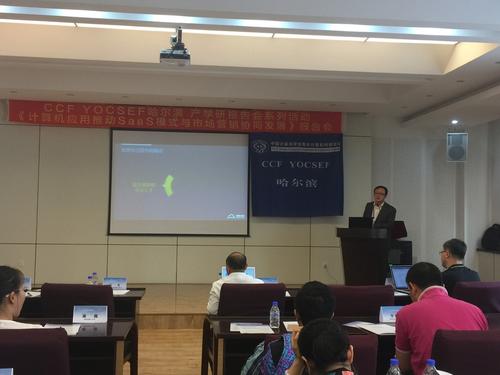 大会第一阶段是两个精彩的产学研报告活动。报告由YOCSEF哈尔滨候任副主席保鑫主持。执行主席为保鑫和AC委员景维鹏。上午9点30分,由来自北京神州云动科技股份有限公司的闫术首先带来了题为“破解SaaS信息化之谜”的演讲。闫术博士首先以一段介绍SaaS的视频开始,引入平台实现的功能。然后以天津某造纸厂作为案例,展示公司应用SaaS软件后效益的提高。最后,闫术博士介绍了SaaS信息化的发展历史、研究现状和技术类型。