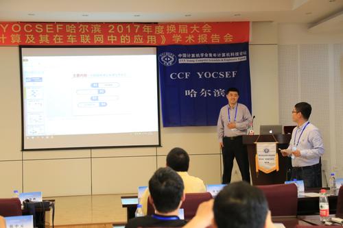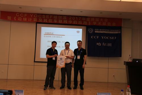 2017年6月18日在哈尔滨工业大学活动中心331会议室,中国计算机学会青年计算机科技论坛(CCF YOCSEF)哈尔滨分论坛换届大会隆重举行,同期还举办了题为“计算机应用推动SaaS模式与市场营销协同发展”的产学研报告会、题为“移动边缘计算及其在车联网中的应用”的学术报告会。中科云海的鹿泽光正式接棒CCF YOCSEF 哈尔滨2017-2018主席。YOCSEF总部AC委员林俊宇、邬向前、祝烈煌、上海分论坛AC委员薛建新、齐国峰、天津分论坛AC委员董永峰、郑州分论坛主席贾丹丹、青岛分论坛主席王胜科、大连分论坛主席王新年、AC委员孙伟、沈阳分论坛主席冯勇、AC委员邵华、长春分论坛主席张永刚、副主席赵剑、AC委员宋小华、宋小龙、孙铭会等应邀出席了本次会议。CCF YOCSEF哈尔滨主席车万翔、副主席陈婷婷、邱兆文、AC委员保鑫、桑艳娟、冯光升、高辉、韩启龙、韩琦、景维鹏、李晓坤、马吉权、潘海为、宋显华、张英涛、张茹、张宇、周长建、候任AC委员宋洪涛、谢巍、张立国、赵国生和委员孙艳庆等参加了会议。