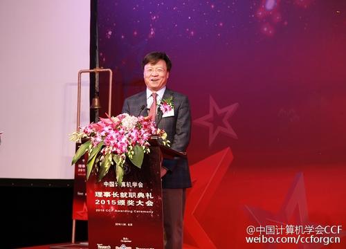 中国计算机学会理事长就职典礼暨2015颁奖大会于2016年1月30日在北京隆重举行。本次大会的主题是“责任•创新•奉献”,会上颁发了2015年度CCF终身成就奖、CCF青年科学家奖、CCF优秀博士学位论文奖、CCF夏培肃奖等7个奖项,表彰了一批中国计算机事业做出杰出贡献的科学家和教育工作者。