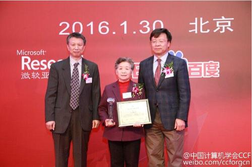 颁奖会上,两位为中国计算机事业作出杰出贡献的德高望重的老科学家获得CCF终身成就奖,他们是中科院计算所研究员倪光南院士和国防科技大学教授周兴铭院士。倪光南参与研制我国自行设计的第一台电子管计算机(119机),他提出并实现在汉字输入中应用联想功能,主持开发的联想式汉字系统,较好地解决了汉字处理中一系列技术问题。周兴铭参与了一系列国产计算机的研制工作,主持研制了我国第一台全数字实时仿真计算机“银河-仿1”和我国第一台面向科学/工程计算的10亿次级“银河-II”并行巨型计算机系统。