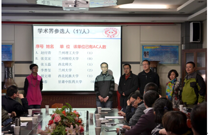 接着进行了新一届主席会议成员的选举,选举由CCF YOCSEF总部AC、候任副主席何万青主持。按照CCF YOCSEF条例规定,CCF YOCSEF兰州学术委员会主席、副主席按照差额竞选和无记名投票的方式进行选举。王阳萍、张志昌、卢建宙3位AC委员参加了主席竞选,参选人进行了4分钟的竞选演讲,阐述各自的优势和施政纲领。演讲结束后,参选者就现场其他委员的提问进行了答辩,进一步阐明建设和发展CCF YOCSEF的新主张。经过到会AC委员无记名投票,王阳萍当选新一届AC主席。AC委员张志昌、卢建宙、年福忠、刘志贵、杨裔竞选副主席,经过竞选演说、答辩和无记名投票,张志昌、卢建宙、杨裔当选新一届副主席。经新任主席王阳萍提名,全体到会AC委员举手表决通过,AC委员胡文瑾和沈玉琳任学术秘书。新一届主席会议将于2016年5月上任,任期1年。