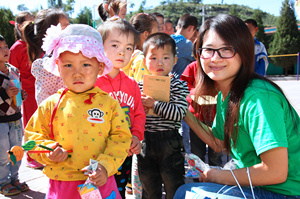 (上图:CCF扶贫团和陶家村小学孩子们一起唱歌、合影)