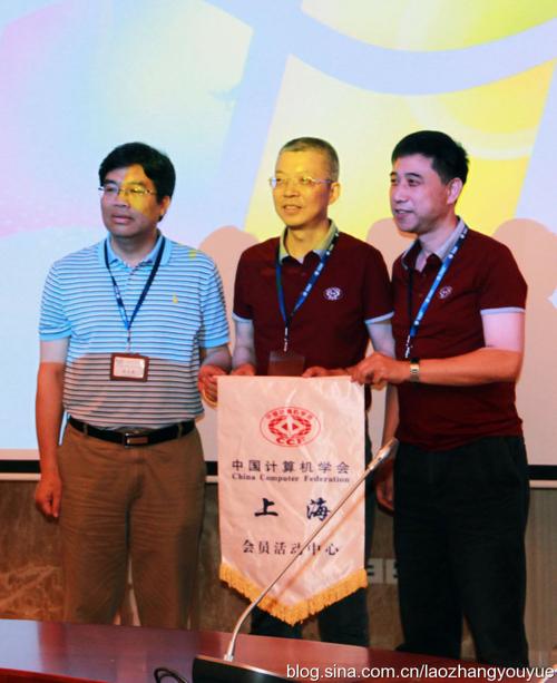 CCF上海第二任主席、复旦大学王晓阳教授首先做了CCF上海2015-2017年的工作总结。他指出,在两年任期内,通过各方面的共同努力,上海CCF会员数由700人增长到了1267人,增长率74%。先后组织CCF冠名活动20余项,代表性活动包括图灵奖得主Ivan Sutherland教授学术报告会、2016海外青年之星计算机主题论坛、CCF上海大数据节等。获得2016年度优秀分部荣誉称号。随后,颁发了CCF上海优秀活动和优秀委员两个奖项。