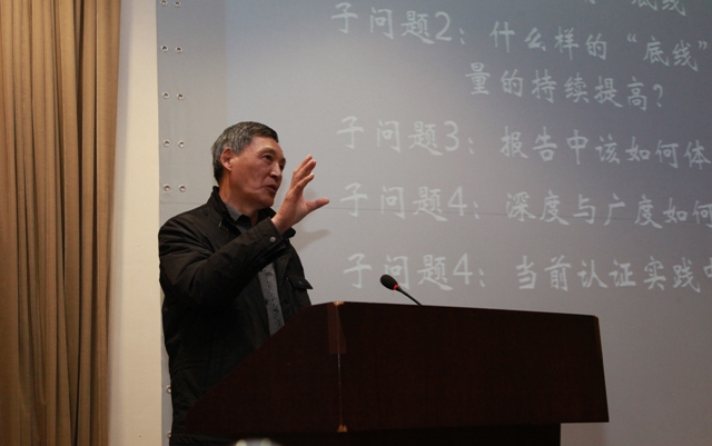 第一天的全体会议由杜子德主持,他首先对目前认证形势、要求以及纪律等问题进行了介绍;臧斌宇对自评报告中存在的常见问题进行了讲解;蒋宗礼就现场考查中的常见问题进行了讲解;陈道蓄就一些准备进行认证专业具有的共性和关键的问题进行了集中解释。