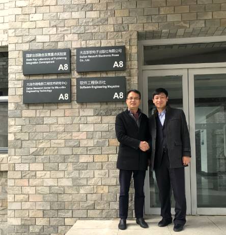 次日中午,徐建昌一行拜访了CCF会员与分部工委执委董本清,参观了大连东软信息学院国家出版融合发展重点实验室、软件工程杂志社等,双方在愉快的交流过程中,不断地碰撞出新想法,在相关理念上产生了共同的认识,就软件工程杂志的运营、宁波市信息化智库的打造等问题萌发了初步合作意向。