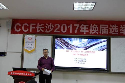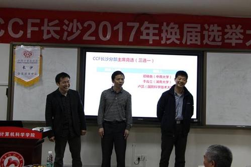 2017年4月8日,CCF长沙换届选举会议在湖南师范大学成功举办。CCF长沙委员、武汉分部主席李智勇先生和广州分部主席臧根林博士参加了长沙分部换届选举会议。期间还举办了CCF长沙、广州、武汉三地联合活动。