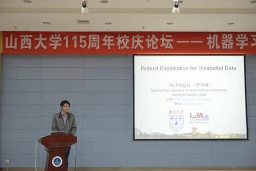 本次论坛邀请了南京大学博士生导师、国家优青获得者、教育部新世纪人才黎铭副教授,南京大学博士生导师、全国优博论文获得者俞扬副教授,南京大学博士、CCF优博论文获得者、CCF青年人才发展计划入选者李宇峰研究员等国内机器学习领域的权威专家和知名学者向与会者分享了他们团队的最新研究成果,展望了机器学习发展趋势和面临的挑战。同时,来自山西大学计算机与信息技术学院的优秀博士生田萌、姜高霞和任丽芳就我校机器学习团队的工作情况做了精彩的报告,与参会专家学者进行了交流。