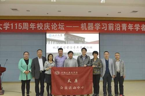 在山西大学建校115周年之际,2017年5月6日,CCF太原会员活动中心(简称:CCF太原)在山西大学举办“机器学习前沿青年学者论坛”。参加本次论坛的代表来自山西大学、太原理工大学、中北大学、太原科技大学、太原师范学院、山西医科大学、山西能源学院、大同大学、山西金融职业学院、山西大学商务学院等单位,共计160余人。论坛由CCF太原分部委员、山西大学计算机与信息技术学院副院长王文剑教授致开幕词,CCF太原分部委员、山西大学计算机与信息技术学院钱宇华教授主持了本次论坛。