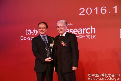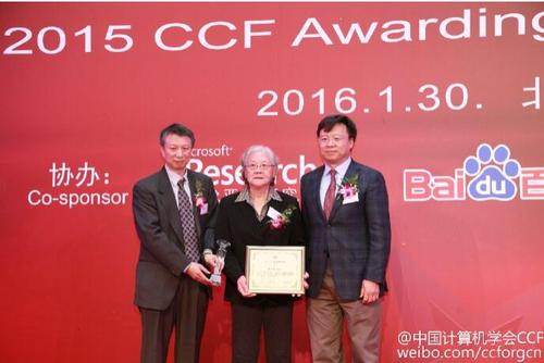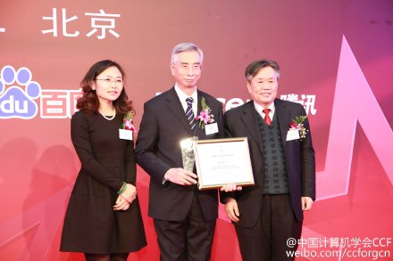 颁奖会上,两位为中国计算机事业作出杰出贡献的德高望重的老科学家获得CCF终身成就奖,他们是中科院计算所研究员倪光南院士和国防科技大学教授周兴铭院士。倪光南参与研制我国自行设计的第一台电子管计算机(119机),他提出并实现在汉字输入中应用联想功能,主持开发的联想式汉字系统,较好地解决了汉字处理中一系列技术问题。周兴铭参与了一系列国产计算机的研制工作,主持研制了我国第一台全数字实时仿真计算机“银河-仿1”和我国第一台面向科学/工程计算的10亿次级“银河-II”并行巨型计算机系统。