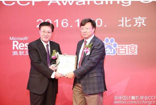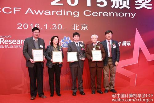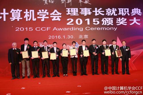 中国计算机学会理事长就职典礼暨2015颁奖大会于2016年1月30日在北京隆重举行。本次大会的主题是“责任•创新•奉献”,会上颁发了2015年度CCF终身成就奖、CCF青年科学家奖、CCF优秀博士学位论文奖、CCF夏培肃奖等7个奖项,表彰了一批中国计算机事业做出杰出贡献的科学家和教育工作者。