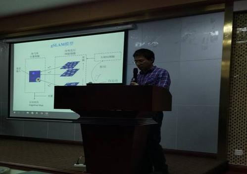 随后,唐华锦老师给同学们带来了题为“从神经科学到智能机器人”的学术报告,首先,唐老师以神经认知科学及其在机器人学科中的发展简介为开场白,随后以老鼠为例,向大家展示了生物是通过某种定位细胞进行定位,并由此产生了一个疑问,即我们是否能够通过模拟生物的这种定位方式进行类脑的科学研究呢?随后向大家展示了他们在实验中所做出的成像样本以及一些实验模型,如下图所示:
