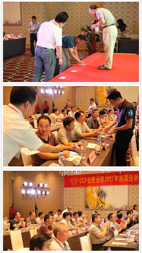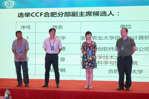 各竞选换届,台上候选人热情洋溢激情演说,现场委员挑战出击连续发问。经现场委员无记名投票,在公开透明地选举中,最终由中国科学技术大学信息科学技术学院执行院长吴枫担任CCF合肥主席;科大国创软件股份公司副总裁许广德、安徽农业大学信息与计算机学院副院长张友华任CCF合肥副主席;合肥寰景信息技术有限公司董事长陈拥权连任CCF合肥秘书长。通过精彩角逐,新一届执行委员会委员、监督委员会主席、监督委员会委员也分别产生。整个选举结果公平公正、真实有效。