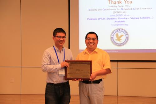 大会第二阶段是“三个移动边缘计算及车联网通信”的学术报告会。报告会执行主席为候任副主席冯光升和AC委员景维鹏。13:00开始,由来自美国弗吉尼亚大学的副教授宋厚冰作了题为“Mobile edge computing for enhancing security and privacy”的学术报告。介绍了边缘计算、移动边缘计算以及增强安全和隐私的移动边缘计算技术。