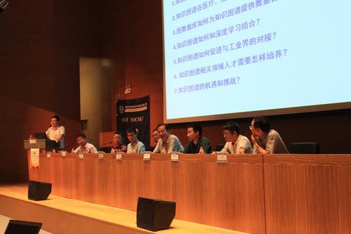 在Panel专题讨论环节,冯志勇教授、王克文教授、鲍捷博士、丁力博士、李元放博士、王昊奋博士、刘升平博士和彭鹏博士与在场的学术界和企业界代表围绕“知识图谱与图数据库新进展”主题,针对“知识图谱是否是一门科学?”、“知识图谱在医疗、法律、金融等行业应用中的前景”、“图数据库如何为知识图谱提供数据管理?”、“知识图谱如何与深度学习结合?”、“知识图谱相关领域人才需要怎样培养?”、“知识图谱的机遇和挑战”等热点前沿问题展开了深入讨论,精彩地回答了与会代表提出的各个问题,Panel专题讨论环节持续近1个半小时,最后各位Panel嘉宾用一句话展望了知识图谱未来的发展前景。