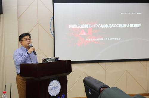 在研讨会的第二个阶段,首先由兰州大学化学化工学院姚小军教授带来了题为“高性能计算环境下的药物-靶标相互作用理论预测及应用”的报告,详细介绍了基于网格计算和机器学习算法的药物和靶标相互作用的预测方法,以及发展更准确高效的药物与靶标相互作用预测新方法及化学和生物学大数据分析和挖掘新算法。紧接着由员何万青博士分享了阿里云弹性高性能计算产品和创新的神龙云服务器架构SCC超级计算集群,他指出,陈文光教授对AWS云超算实例和天河2号的性能测试对比,正是阿里云神龙云服务器解决的痛点,通过软硬一体化的创新,神龙云服务器架构兼具虚拟机的弹性和物理机的高性能和隔离,同时使得基于ROCE网络连接的高性能神龙云服务器构成的SCC超级计算集群,具备高端超算中心的低延迟,高带宽并行效率。何博士当场演示了用E-HPC创建一个集群,进行分子动力学GROMACS仿真并实时在虚拟服务器上渲染的实例。随后,阿里云存储产品专家徐立介绍了阿里云基于阿里云盘古2.0的Lustre并行文件系统。