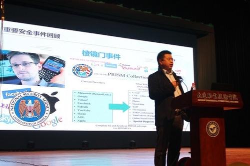 祝烈煌报告题目为《网络空间安全新形势与对策》,他通过解读“棱镜门”、“震网”、“希拉里邮件门”等热点网络安全事件,分析当前网络安全的最新形势,介绍我国维护网络安全的一些举措,提出我国应对当前问题应采取的对策等。报告让全体师生认识到了网络安全及相关技术的重要性,并对信息安全在IT行业的发展前景有了较深的了解。