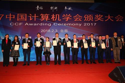 2017中国计算机学会颁奖大会于2018年2月3日在北京金隅喜来登酒店隆重举行。本次大会以“责任•创新•奉献”为主题,颁发了2017年度CCF终身成就奖、CCF杰出贡献奖、CCF卓越服务奖、CCF夏培肃奖、CCF杰出教育奖、CCF计算机企业家奖、CCF杰出工程师奖、CCF优秀博士学位论文奖等8个奖项。在过去一年里为CCF发展做出贡献的152个企事业单位科研院所的300余位嘉宾从全国各地汇聚一堂,应邀见证这辉煌的时刻。