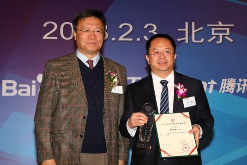CCF计算机企业家奖2014年设立,旨在表彰在计算机产业发展方面做出重大贡献或其技术推动了产业发展的企业领导者。360集团董事长兼CEO周鸿祎先生和太极计算机股份有限公司总裁刘淮松先生获得2017CCF计算机企业家奖。CCF理事长高文为他们颁奖。