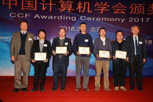 2006年设立的CCF优秀博士学位论文奖,授予在计算机科学与技术领域的基础理论、关键技术或应用技术方面有重要创新的博士学位论文的作者。2017年,陈璐(浙江大学)、董耀祖(上海交通大学)、解定宝(南京大学)、梁小丹(中山大学)、辛博(北京大学)、汪定(北京大学)、王举(西北大学)、邹冬青(北京航空航天大学)、魏恒峰(南京大学)、刘秀龙(大连理工大学)等10位青年学者获得这一荣誉。微软亚洲研究院一直赞助该奖项。颁奖会上,CCF理事长高文和微软亚洲研究院副院长张冬梅女士为10位获奖者颁发了证书和奖杯。