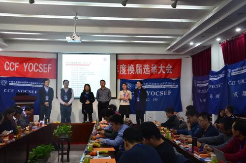 在主席会议选举环节,来自河北工业大学的董永峰和天津超算中心的冯景华参选。每位候选人竞选演讲4分钟,答辩10分钟。激烈的竞争过后,到会AC委员无记名投票,董永峰当选CCF YOCSEF天津新一届主席。接着,冯景华、吴笛、王鑫、刘杰和郝琨等5位候选人参与副主席竞选。经过竞选演说、答辩和无记名投票,冯景华、吴笛和王鑫当选新一届副主席。最后,经候任主席董永峰提名,全体AC委员举手表决通过,候任AC委员刘晶和燕洁将任学术秘书。新一届主席会议将于2018年5月上任,任期1年。新任AC委员,新任主席会议成员分别发表的当选感言,来自各兄弟分论坛的代表进行了交流发言,CCF天津分部主席王劲松和总部联系AC文继荣对天津分论坛的成功换届表示祝贺,并对本次选举会议进行了总结。