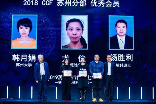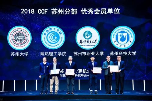 CCF苏州秘书长王涛主持了2018CCF苏州颁奖环节。在CCF苏州2018年度的评优过程中,通过初评,复评,会员投票,执委投票等多轮环节,经过激烈的竞争,产生了CCF苏州优秀会员单位,优秀活动支持单位,优秀个人三项大奖。其中苏州大学、常熟理工大学、苏州市职业大学、苏州科技大学荣获2018年度CCF苏州分部优秀会员单位;苏州市蓝皓计算机科技有限公司、华为技术有限公司、深信服科技有限公司、苏州科豆汇资管理有限公司荣获2018年度CCF分部优秀活动支持单位;CCF苏州执委,CCFYOCSEF苏州副主席尤佳、CCF苏州执委、CCFYOCSEF苏州主席韩月娟、CCF苏州委员杨胜利荣获2018年度CCF苏州分部优秀会员。