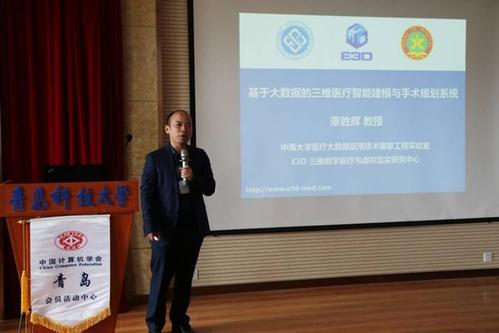 中南大学数据科学与工程系主任廖胜辉教授报告的题目是“智能化三维数字医疗建模技术的最新研究成果”。报告首先结合E3D三位数字建模与设计平台,介绍了三维数字医疗、3D打印与三维数字医疗软件的发展、现状与问题。分析了基于医学大数据的建模设计、功能操作智能化等问题,其中重点介绍了结合翻模铸造、3D打印、立体显示、体感交互等技术的三维数字化医疗,提出了建模设计、分析、无缝集成与多科室联合诊疗的三维医疗软件领域研究热点,并结合泌尿外科领域介绍了基于深度学习的医疗图像分割与三维重建的应用研究,引起与会专家学者的研究共鸣。