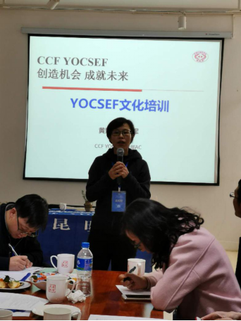 黄婷婷从3问、4S定位、5字诀和6好分论坛四个方面做了文化主题培训。让在场的人都清楚的知道YOCSEF是什么,从哪里来,到哪里去。从4S定位方面诠释了“承担社会责任,促进社会进步;提升成员能力,扩大社会影响;促进成员合作,相互共享资源;探索新的机制,推动学会发展”的内涵,从勇、快、精、利、声5个方面凸显了YOCSEF论坛的特点。最后从搭好台、选好人、选好题、唱好戏、讲好故事和串好门6各方面讲述了如何去做好一个分论坛。