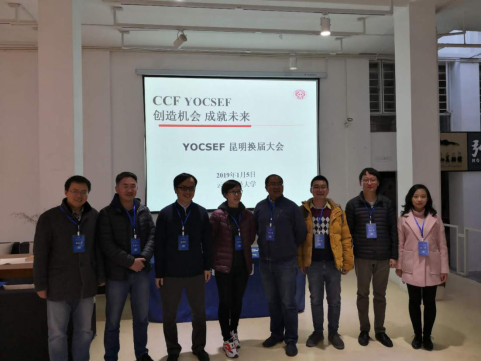 2019年1月5日下午,CCF YOCSEF 昆明2019-2020年度换届选举大会在云南财经大学锺正山美术馆一楼茶艺厅隆重举行,本次换届选举大会由CCF YOCSEF总部AC黄婷婷、徐剑军和昆明现任主席吴红刚共同担任执行主席。哈尔滨主席景维鹏、杭州副主席曹斌、重庆副主席杨智勇、长春后任副主席叶育鑫、广州AC柳毅、郑州副主席梁冰、福州AC陈星、深圳副主席何震宇、天津AC郝小可、桂林副主席董明刚、广西南宁谢勇、上海后任主席李超共计12个分论坛代表出席了本次换届选举大会。本次参会人数总计有60余人,其中CCF YOCSEF昆明AC委员18人,1人出差,1人产假,本次实到会16人。昆明两名荣誉委员潘文林和张劲松也到会支持。