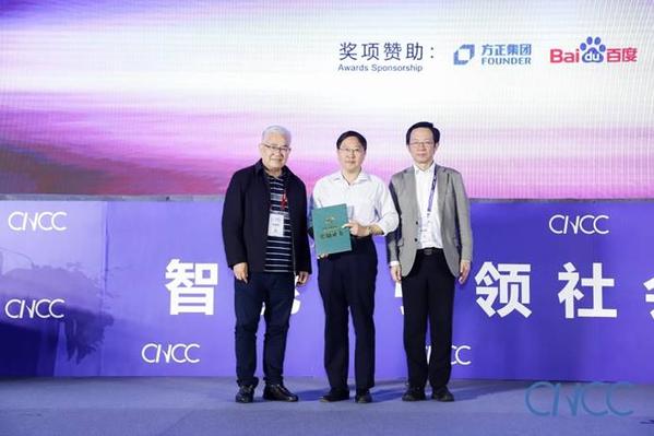 CCF理事长高文(左一)CCF副理事长王巨宏(右一)为技术发明奖二等奖颁奖