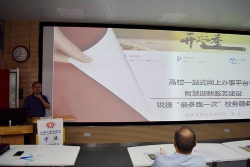 接着,锐捷智慧校园事业部产品经理裘栋作了《一站式网上办事平台与智慧迎新服务建设》的报告,从高校网办业务及迎新需求出发,重点介绍了锐捷网办解决方案和锐捷智能迎新系统。