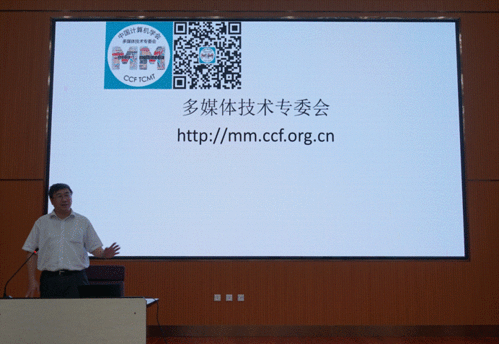 活动开始前,哈尔滨工业大学(威海)的张维刚博士播放了CCF宣传视频,并向听众简要介绍了CCF、发展历程、走进高校活动的意义,以及CCF在各高校计算机相关专业学生中的强大号召力。随后,黄庆明老师对CCF多媒体技术专业委员会做了全面介绍,使听众们更多了解CCF多媒体技术专委会的组织情况、学术交流等。接着三位讲者老师作详细的报告。