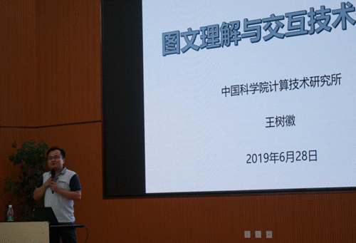 王树徽报告主题为:图文理解与交互技术研究。网络多模态数据爆炸增长,网络内容以图像、音频、文本等形式出现,而这些形式间的语义转换及贯通计算是多媒体、计算机视觉等领域的热点问题。王老师以构建面向实际应用的图文交互系统为研究目标,通过与传统交互方式的对比与关联,分析了当前研究所面临的挑战,讲解了深度特征集成学习、协同注意学习、自监督嵌入学习等相关研究成果。通过相关演示视频,展现了图文交互技术实际应用场景,并结合发展前景介绍了图文交互的未来研究构想和尝试。