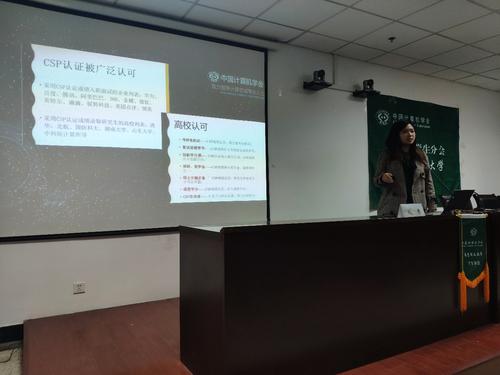 会议开始由孙晋对此次活动的内容和目的进行了介绍,并简单扼要的介绍了CCF和CSP考试。接着CCF南京理工大学学生分会主席张明月播放了CCF宣传片,对CCF进行详细介绍,重点介绍了CCF的性质,及所提供的服务。旨在让学生会员们了解CCF的组织架构、各类活动及活动形式。