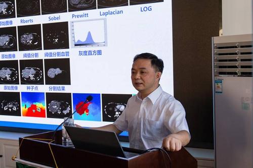 李伟生报告的题目为《多模态医学图像处理》。当前,基于多模态医学图像处理的多维可视化辅助诊疗技术已成为医学图像领域发展的关键问题之一。报告介绍了如何利用临床CT、MRI、PET等多模态医学影像建立多维可视化的数字化结构解剖模型,进而实现对器官及组织各个参数的精确测量,增强医学影像的可靠性、稳定性及容错能力。