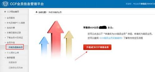 2、 成功登陆后,在右上角“我的CCF”处,选择“信息管理”,进入个人信息管理平台。