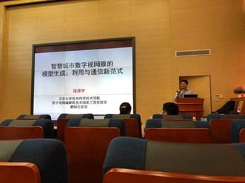 报告环节由许勇教授主持,本次活动邀请北京大学段凌宇教授,悉尼科技大学张健副教授,北京大学邹月娴教授,英国阿尔斯特大学王晖教授,中国科学院计算所纪雯研究员,北京大学施柏鑫研究员(青年千人),北京大学刘家瑛副教授为大家一起分享最新智慧城市相关领域学术成果。段凌宇教授介绍了智慧城市数字视网膜的模型生成、利用与通信范式等相关知识,为智慧城市中数字视网膜处理和分析大规模视觉数据的性能与效率的提高提出了解决方案。张健副教授则介绍了使用元学习的方法来挑战细粒度识别任务相关的知识。邹月娴教授则给大家分享了智慧城市大数据背景下视频分析中行为检测和行为识别两个子问题的研究现状、主流方法、技术挑战以及相应的解决思路。王晖教授则主要介绍了智慧城市背景下食品验证及安全方面的研究。纪雯研究员则跟大家探讨了智慧城市中视频传输下的新经济思维与热点技术,以及人工智能驱动的多媒体技术在智慧城市的典型应用。施柏鑫研究员则基于智慧城市中常见的文本识别、人脸识别和基于挡风玻璃的车辆重识别等典型案例,介绍可以保持可识别特征的反射消除理论与实用解决方案。最后刘家瑛副教授则给大家介绍了数据驱动下基于深度学习的智能影像增强技术,为进一步提升智慧城市中影像的质量和计算性能提供解决方案。