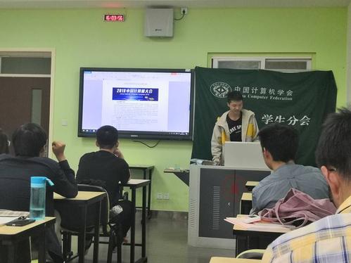 CCF川大分会主席黄苗主持了这次培训会,首先介绍CCF基本情况。CCF川大分会以服务会员为宗旨,积极落实服务本地化的目标,更切实地为广大学生会员提供福利,提高CCF在学生会员中的影响力,而执行委员则是服务于会员、策划组织活动的主力军。