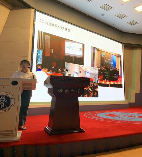 宣讲会一开始,CCF西南大学分会现任主席彭景同学为现场的新生详细介绍了中国计算机学会,并且从多个方面介绍了学会的发展前景和优势,介绍了CCF的会员制度,讲解了加入CCF学生会员的政策和优惠以及可享受到的学生权益,比如,每个月可获得一本CCF电子期刊,可以使用数字图书馆等有效学习资源,并获得CCF优惠的论文版面费等等,着重介绍并号召同学们积极参加csp考试认证,随后展示了CCF西南大学分会曾举办过的一些活动照片,并为现场加入会员的新生提供了CCF的精美礼品。新生们积极参与互动,现场氛围十分热烈。